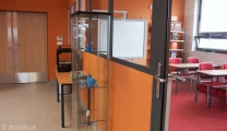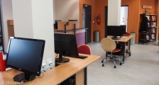 Jest to biblioteka jednoprzestrzenna z wydzieloną cichą czytelnią oraz niewielkim zapleczem biurowym.